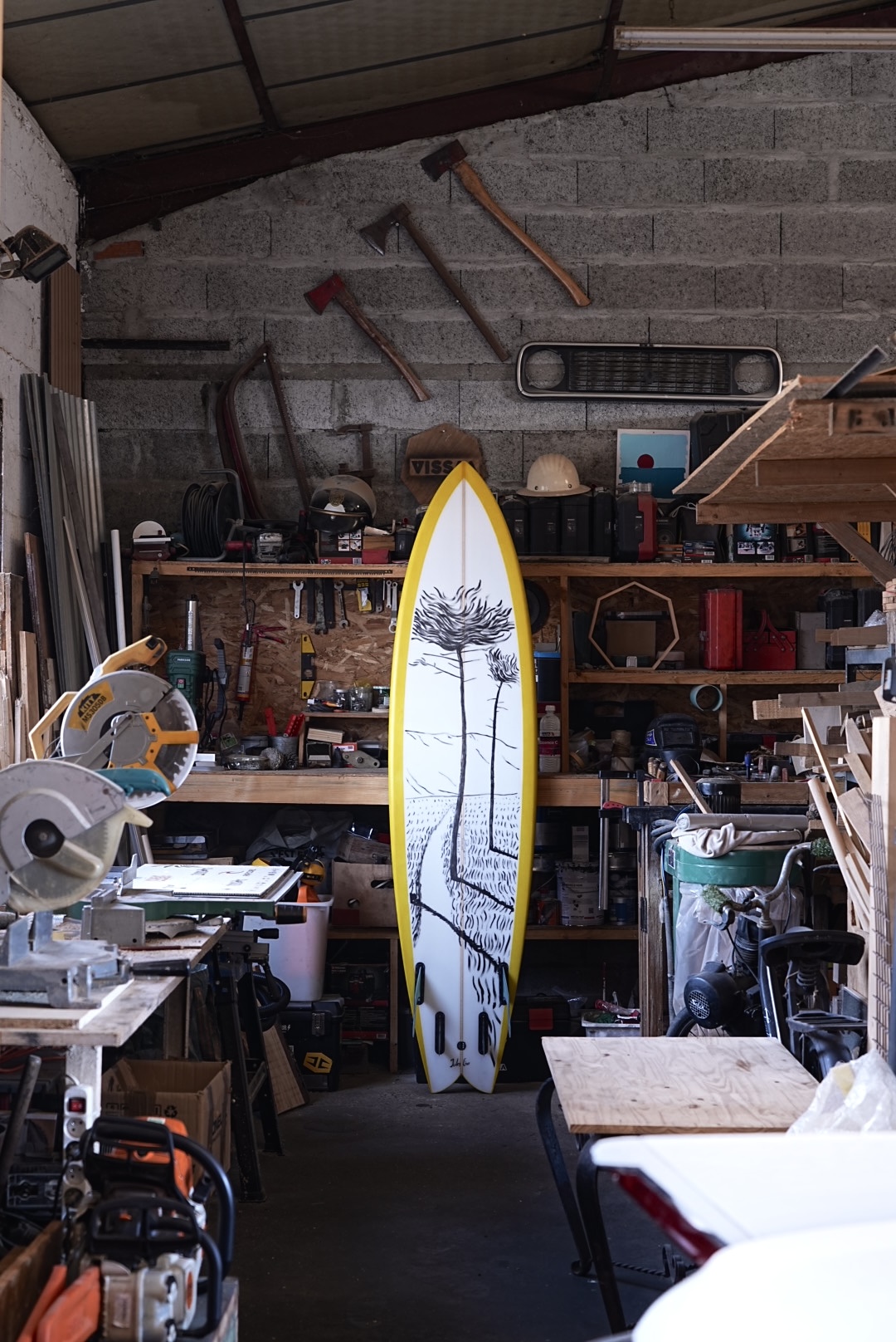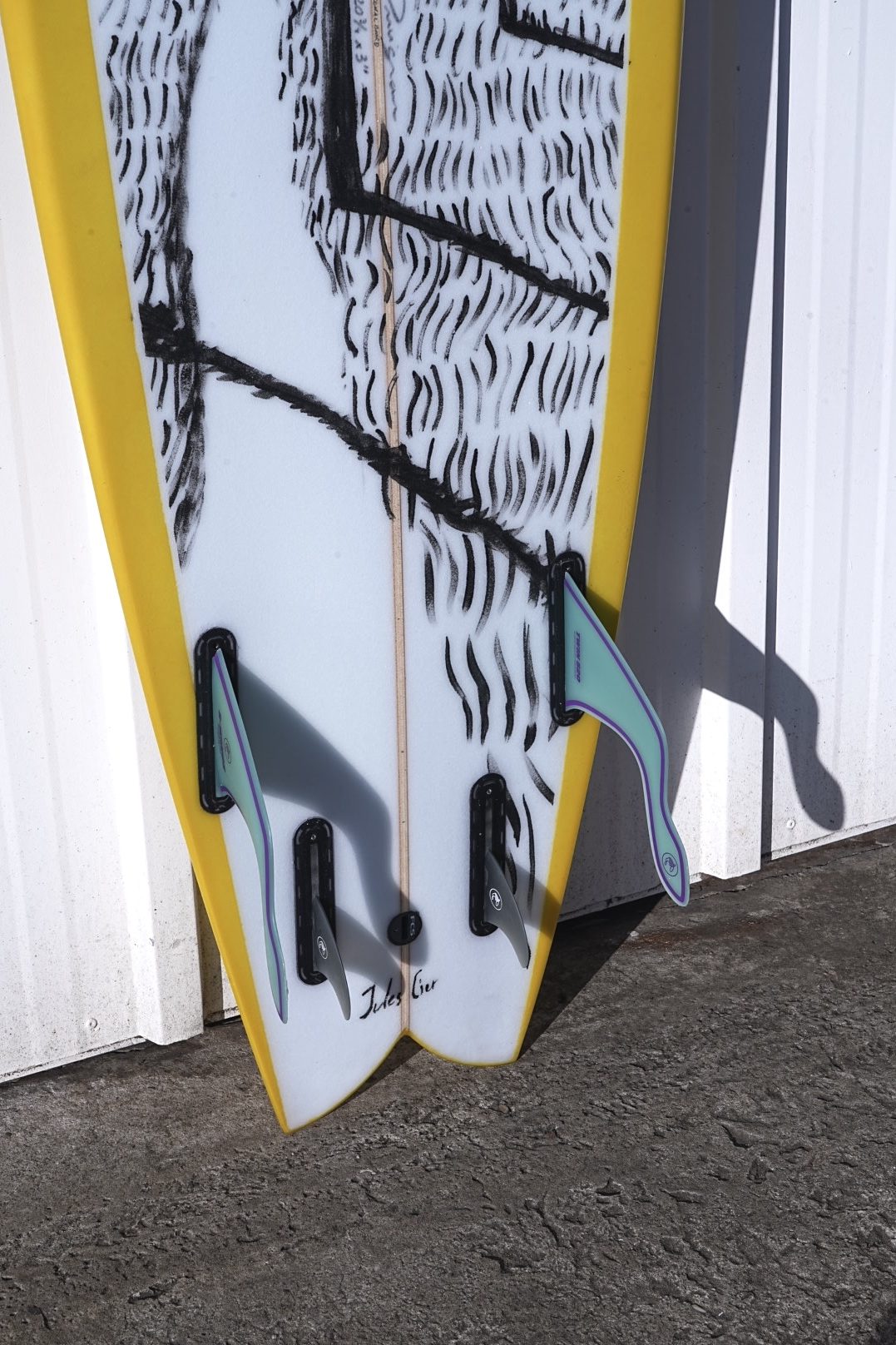 qui nous ressemblait à tous les deux. Lui au shape et moi au motif, nous avons conçu cette planche de toute pièce, une véritable oeuvre d’art flottante, authentique Landaise».