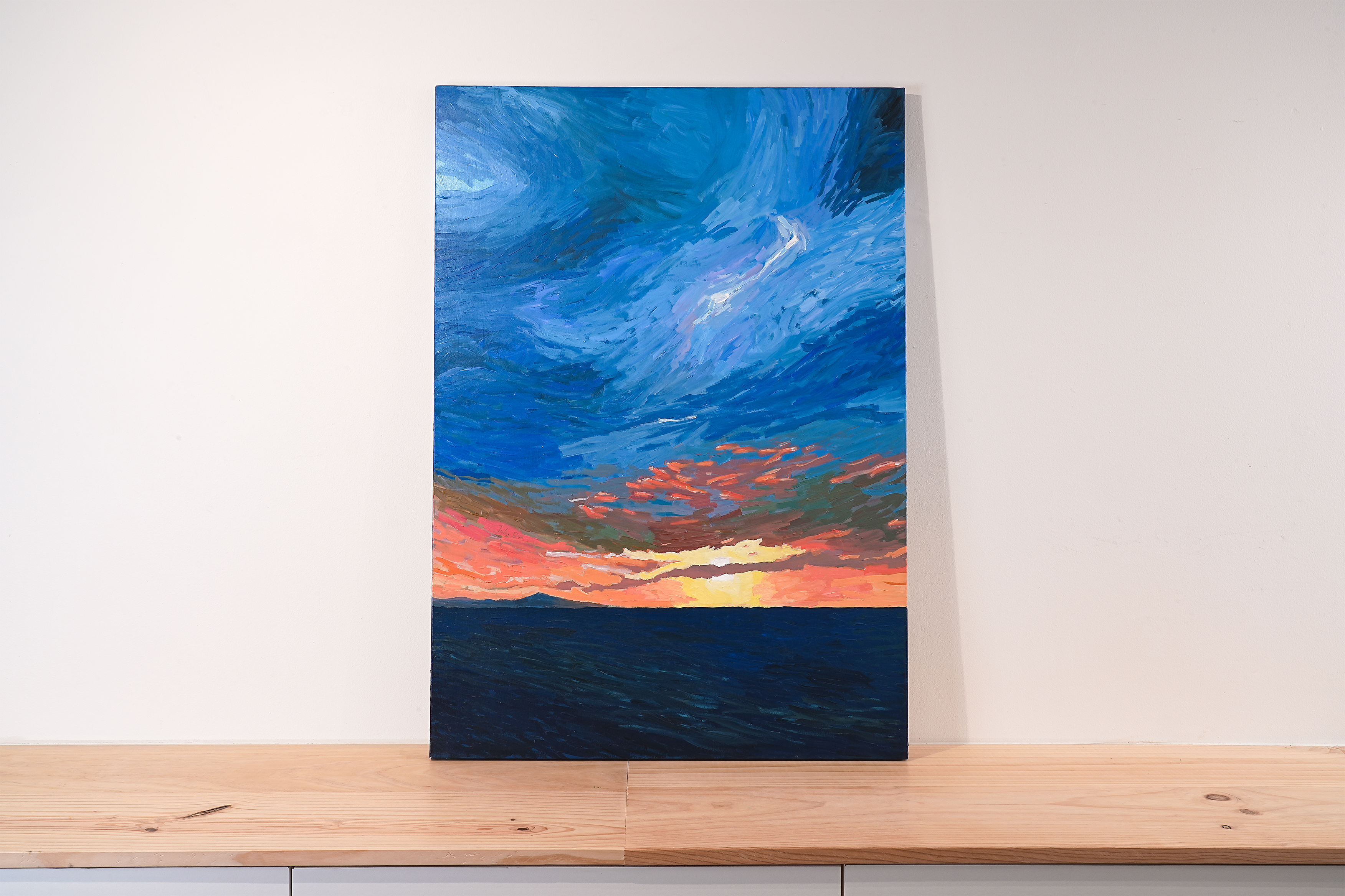 COUCHER DE SOLEIL – DIMENSIONS/ 65X92cm – ACRYLIQUE SUR TOILE – 2024