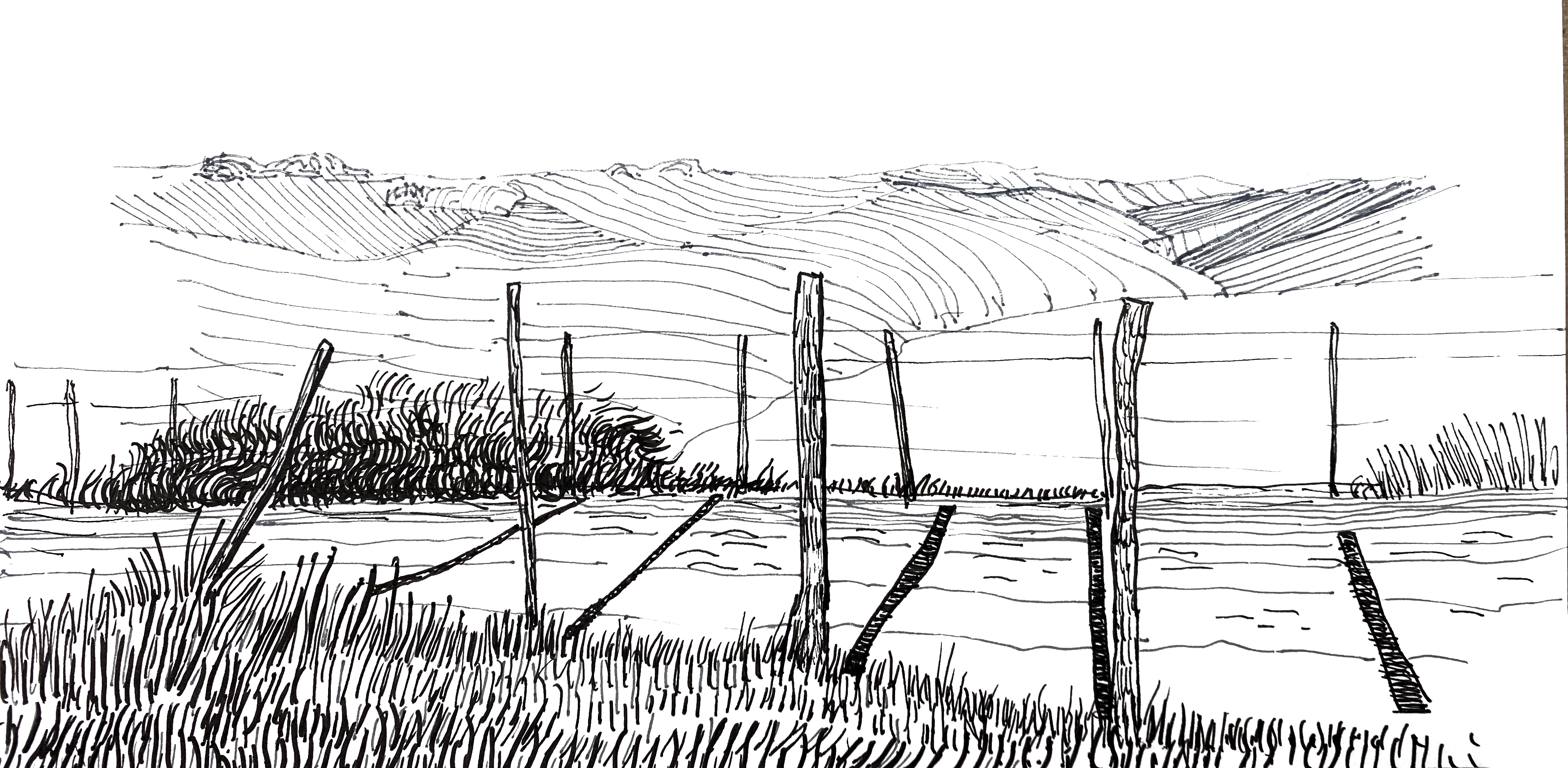 Cette série de dessins, réalisée sur place est une immersion dans le paysage vallonné du pays Basques. Les cultures des terres sont de véritables sources d’inspiration.