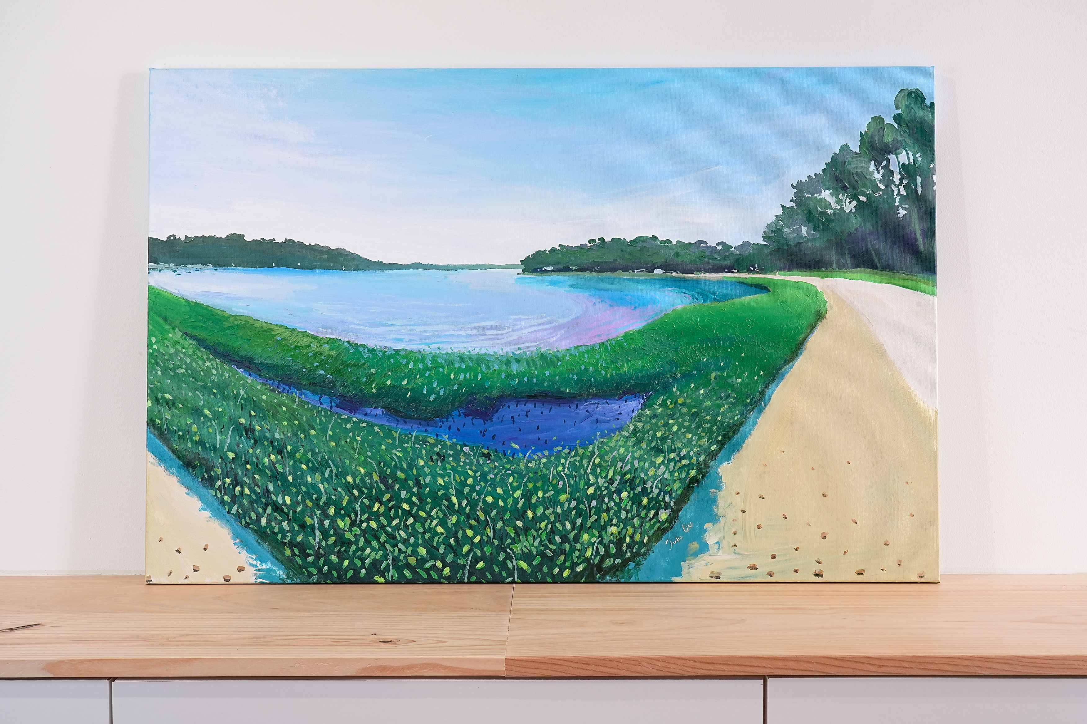 LE TOUR DU LAC D’HOSSEGOR- DIMENSIONS/ 62X92cm – ACRYLIQUE SUR TOILE – 2024