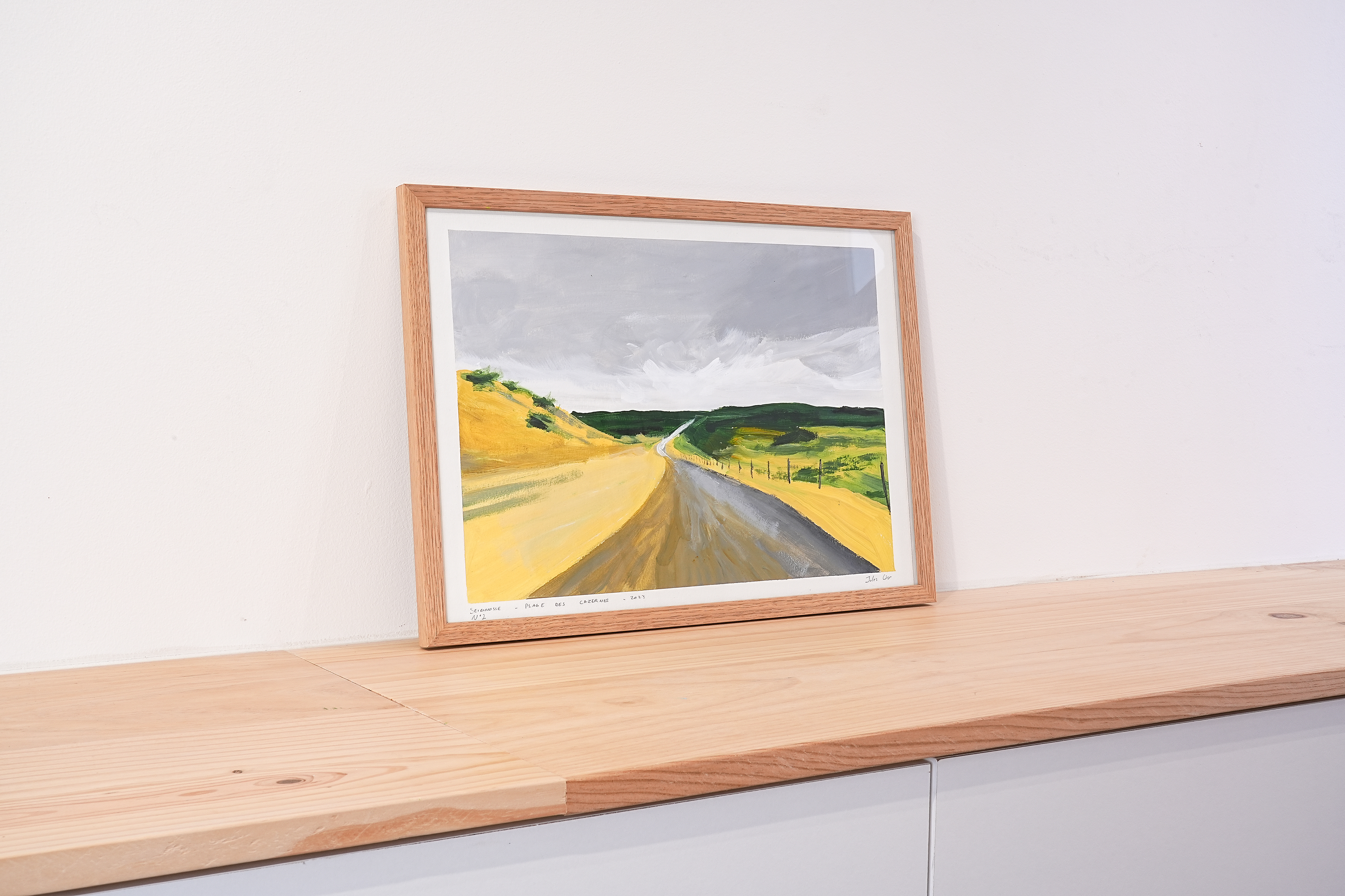 DIMENSIONS/ 33X45cm – ACRYLIQUE SUR PAPIER/ 250G – ENCADREMENT BOIS/ CHÊNE – 2023.