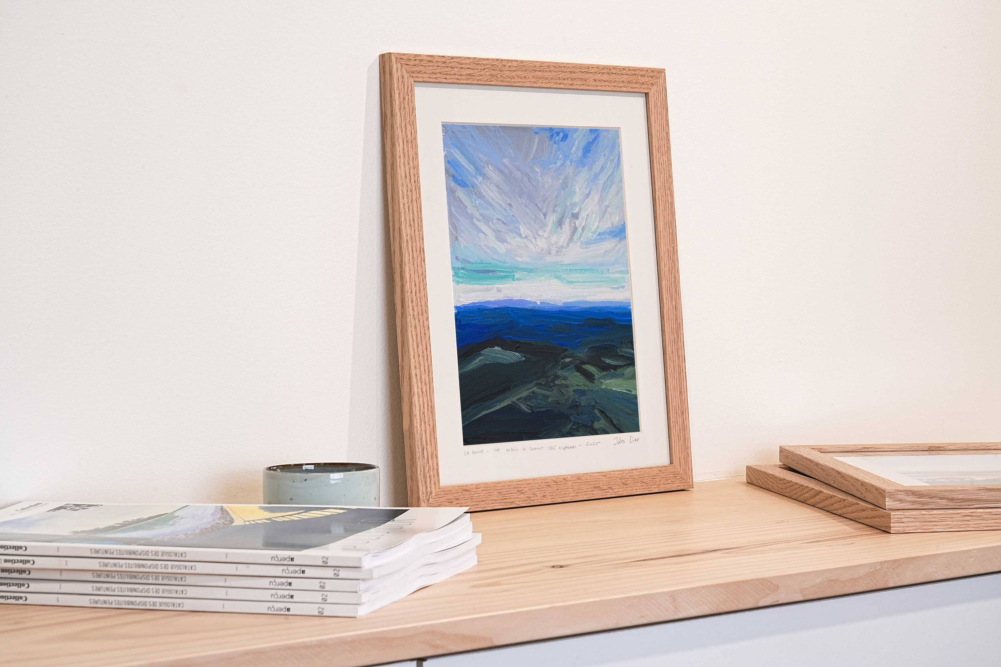 DIMENSIONS/ 27X33cm – ACRYLIQUE SUR PAPIER/ 250G – ENCADREMENT BOIS/ CHÊNE – 2025.